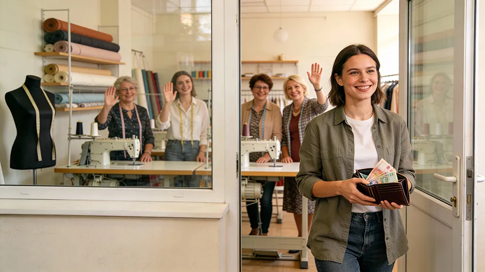 - Чаще всего нет ни материалов, ни оборудования. Вам не смогут предоставить выбор подкладки или фурнитуры, всё придётся искать и покупать самой.